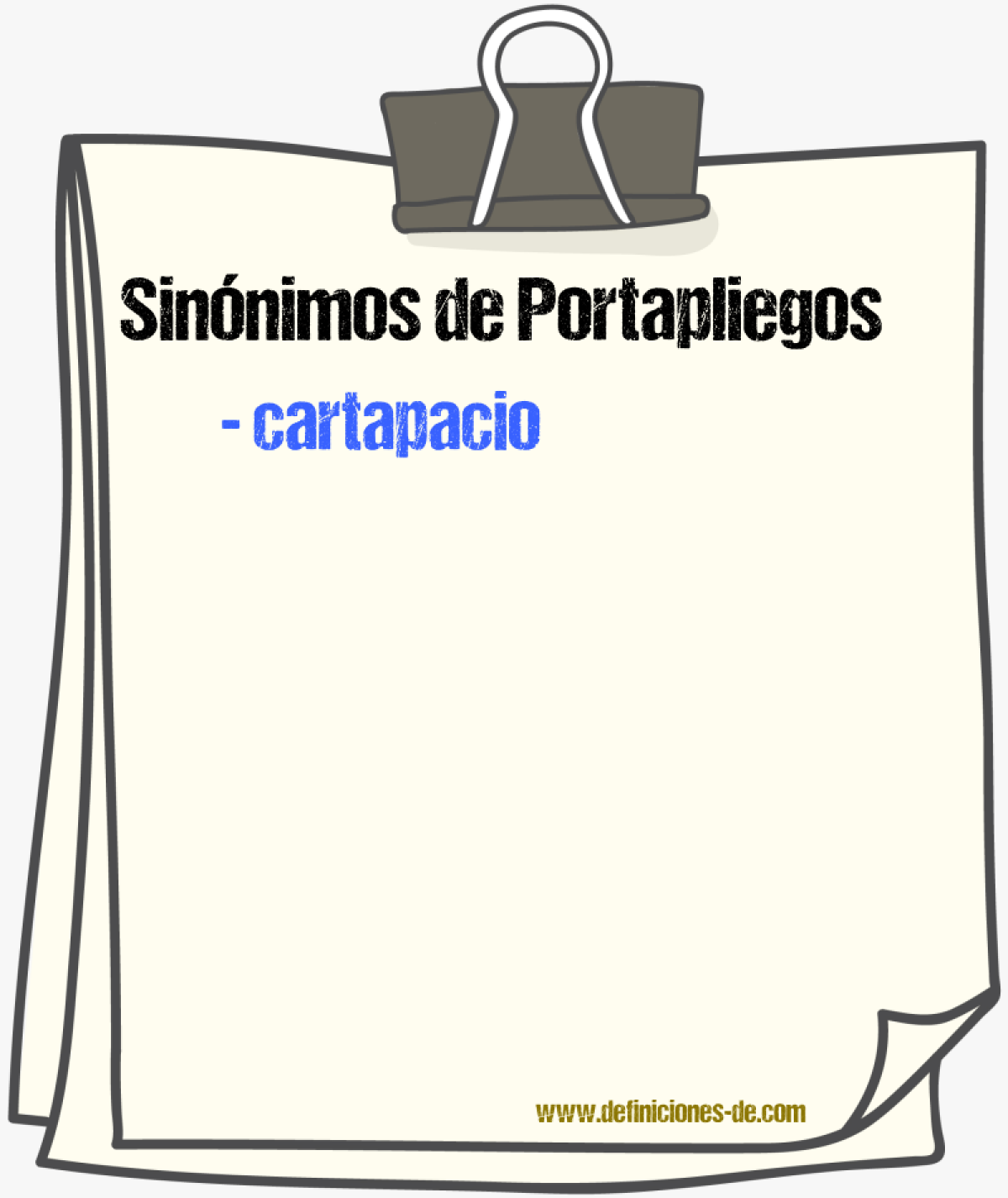 Definiciones-de.com (2017). Sinónimos de «portapliegos» - ALEGSA © 15/07/2017 url: https://www.definiciones-de.com/Sinonimos/de/portapliegos.php