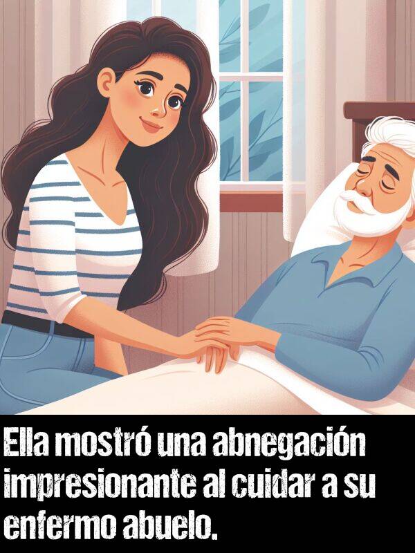 Ejemplos de uso: "La madre Teresa de Calcuta es un ejemplo de abnegación por su dedicación a los más necesitados".