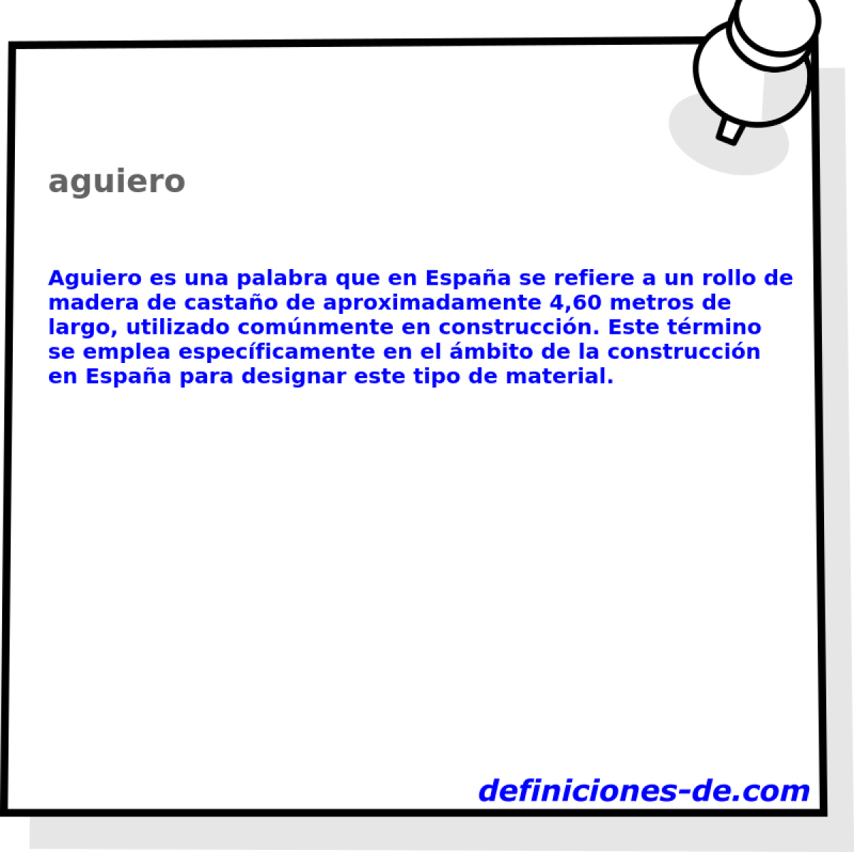 Aguiero es una palabra que en España se refiere a un rollo de madera de castaño de aproximadamente 4,60 metros de largo, utilizado comúnmente en construcción.