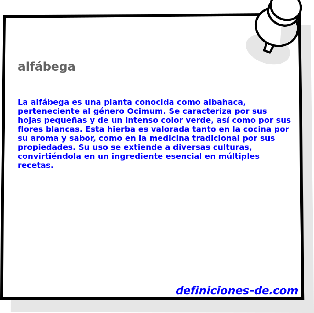 Más abreviaturas...Cómo citar la definición de alfábegaDefiniciones-de.com (2016). Definición de alfábega - Leandro Alegsa © 31/05/2016 url: https://www.definiciones-de.com/Definicion/de/alfabega.php