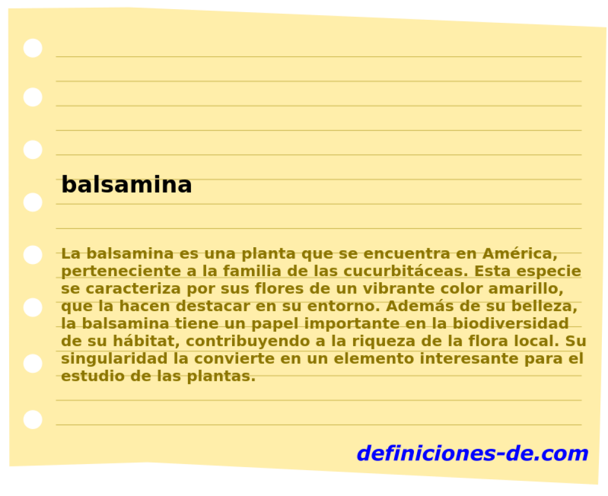 Más abreviaturas...Cómo citar la definición de balsaminaDefiniciones-de.com (2010). Definición de balsamina - Leandro Alegsa © 31/05/2010 url: https://www.definiciones-de.com/Definicion/de/balsamina.php
