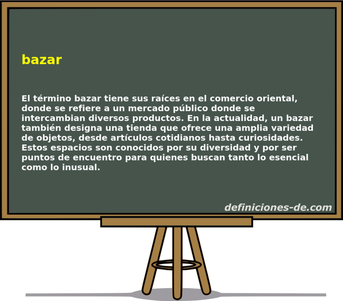 El término bazar tiene sus raíces en el comercio oriental, donde se refiere a un mercado público donde se intercambian diversos productos.