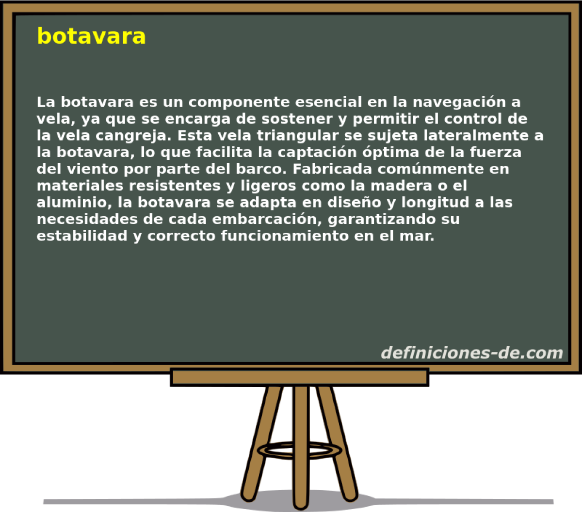 Abreviaturas empleadas en la definiciónCómo citar la definición de botavaraDefiniciones-de.com (2023). Definición de botavara - Leandro Alegsa © 12/11/2023 url: https://www.definiciones-de.com/Definicion/de/botavara.php