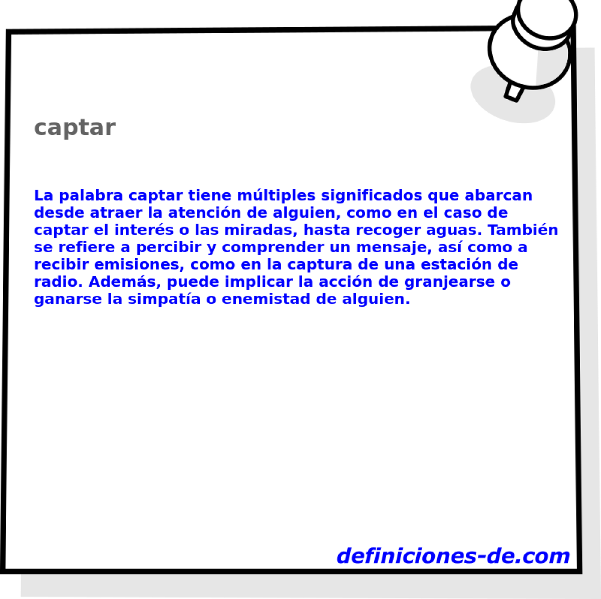 La palabra captar tiene múltiples significados que abarcan desde atraer la atención de alguien, como en el caso de captar el interés o las miradas, hasta recoger aguas.