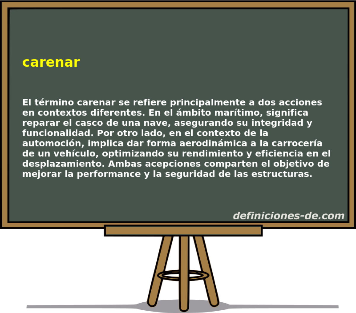 Más abreviaturas...Cómo citar la definición de carenarDefiniciones-de.com (2010). Definición de carenar - Leandro Alegsa © 17/06/2010 url: https://www.definiciones-de.com/Definicion/de/carenar.php
