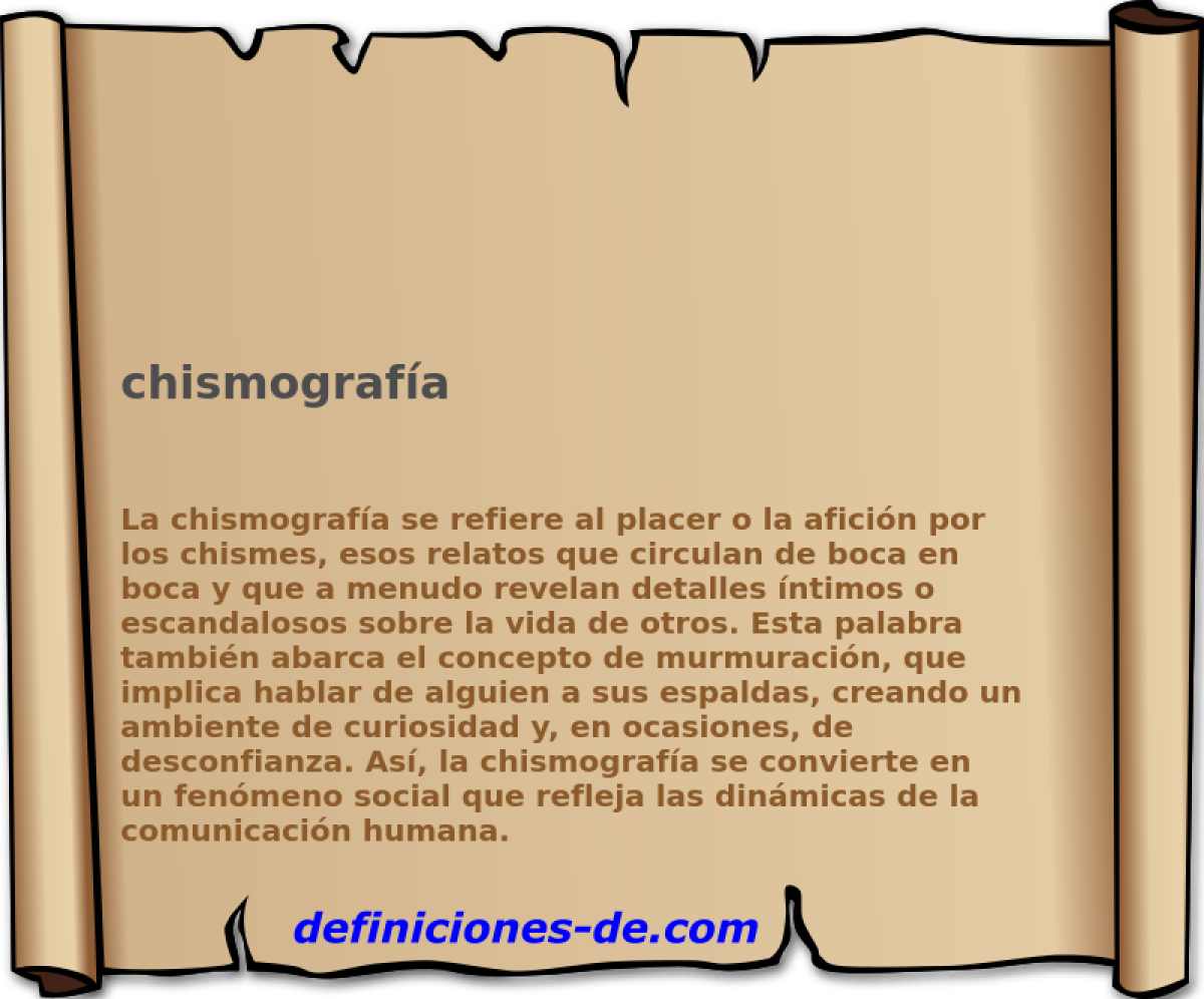 Abreviaturas empleadas en la definiciónCómo citar la definición de chismografíaDefiniciones-de.com (2010). Definición de chismografía - Leandro Alegsa © 16/06/2010 url: https://www.definiciones-de.com/Definicion/de/chismografia.php