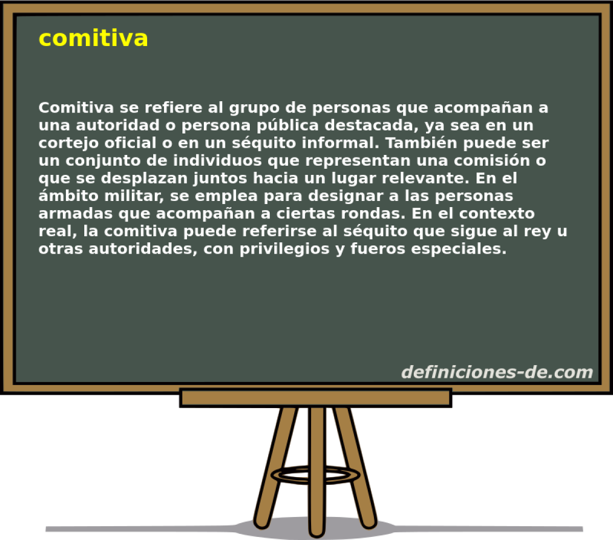 Comitiva se refiere al grupo de personas que acompañan a una autoridad o persona pública destacada, ya sea en un cortejo oficial o en un séquito informal.
