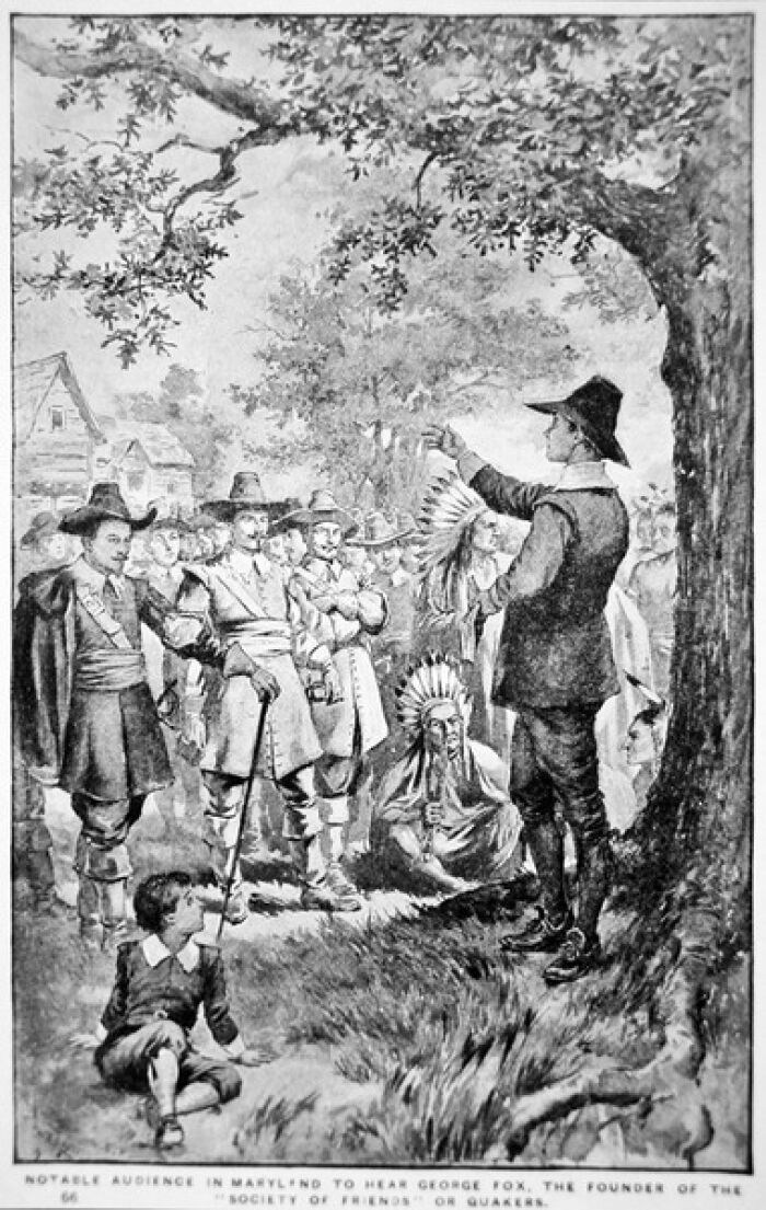 Uno de sus seguidores, William Penn, recibió extensas concesiones de tierras en Pensilvania (EE. UU.) en pago de una deuda contraída por la Corona con su padre, el almirante Penn. No tardaron en llegar allí sus perseguidos colegas europeos. Con ellos fundó Filadelfia (1682), que se convirtió en foco del cuaquerismo norteamericano. El Comité de Servicios de los Amigos Americanos, juntamente con la Sociedad Británica de Amigos, afectos ambos a la secta, fueron galardonados en 1947 con el Premio Nobel de la Paz.