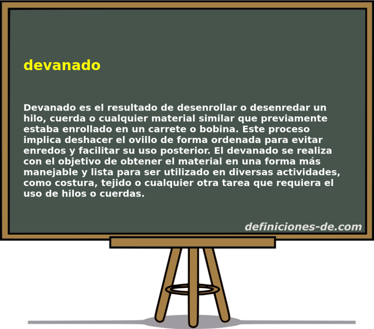 Devanado es el resultado de desenrollar o desenredar un hilo, cuerda o cualquier material similar que previamente estaba enrollado en un carrete o bobina.