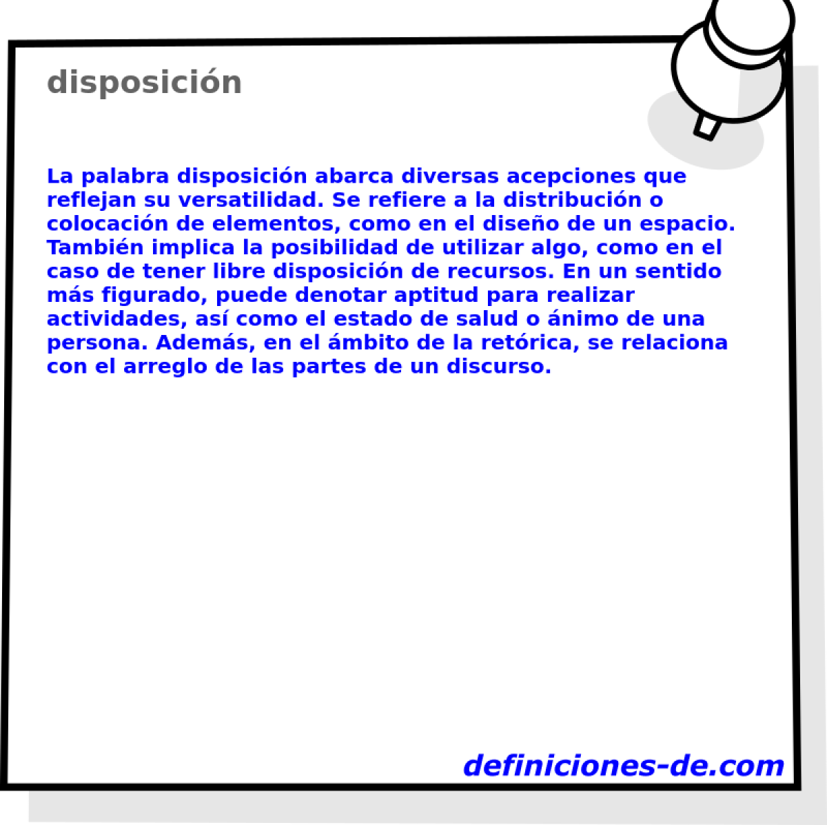 Definiciones-de.com (2010). Definición de disposición - Leandro Alegsa © 27/06/2010 url: https://www.definiciones-de.com/Definicion/de/disposicion.php