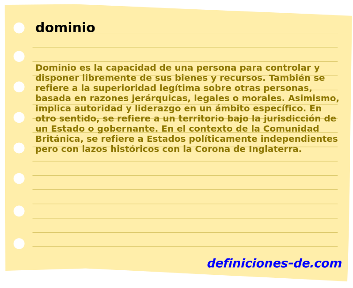 Dominio es la capacidad de una persona para controlar y disponer libremente de sus bienes y recursos.