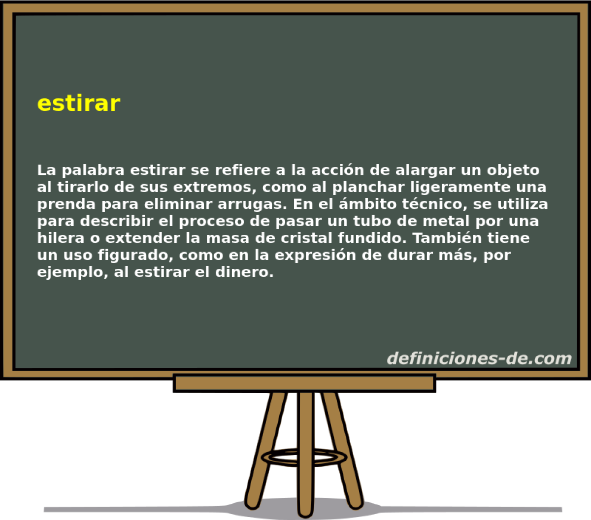 La palabra estirar se refiere a la acción de alargar un objeto al tirarlo de sus extremos, como al planchar ligeramente una prenda para eliminar arrugas.