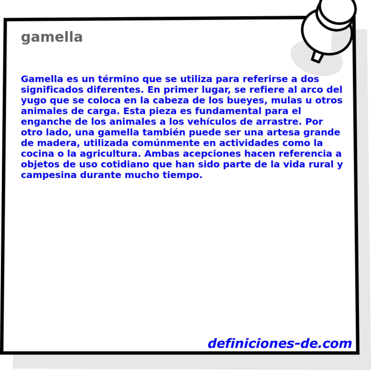 Por otro lado, una gamella también puede ser una artesa grande de madera, utilizada comúnmente en actividades como la cocina o la agricultura.