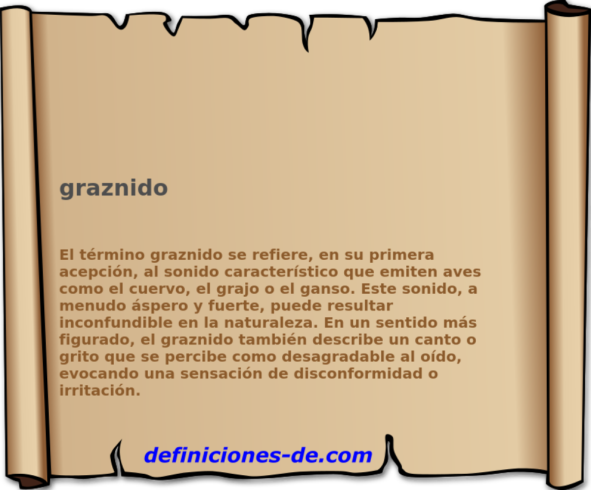 El término graznido se refiere, en su primera acepción, al sonido característico que emiten aves como el cuervo, el grajo o el ganso.