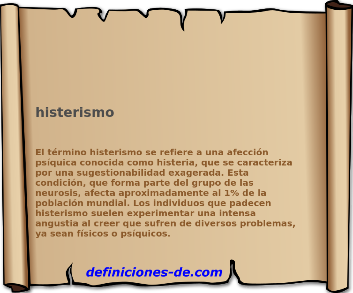 El término histerismo se refiere a una afección psíquica conocida como histeria, que se caracteriza por una sugestionabilidad exagerada.