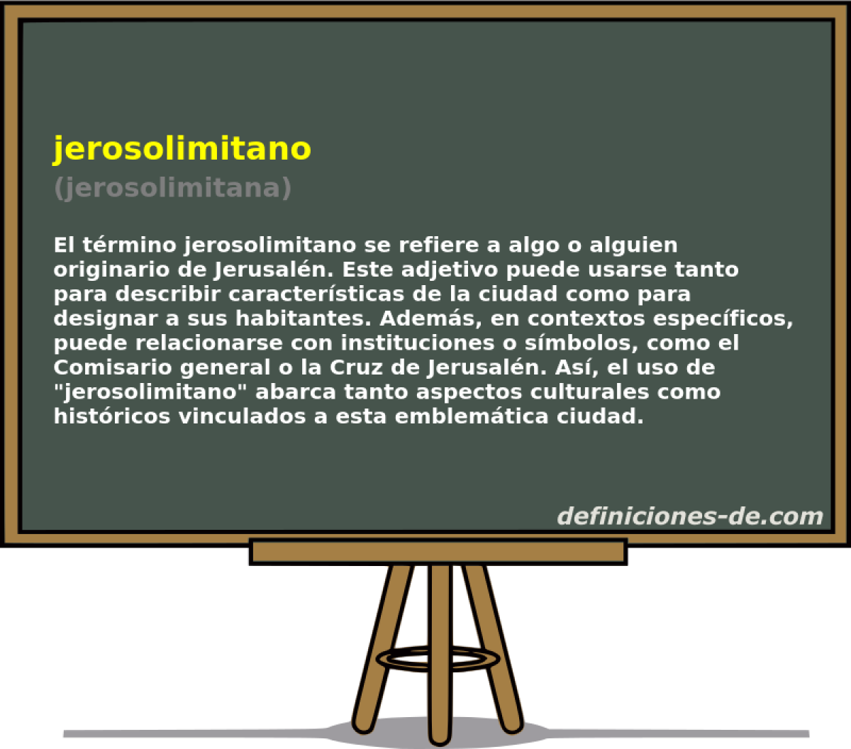 Así, el uso de "jerosolimitano" abarca tanto aspectos culturales como históricos vinculados a esta emblemática ciudad.