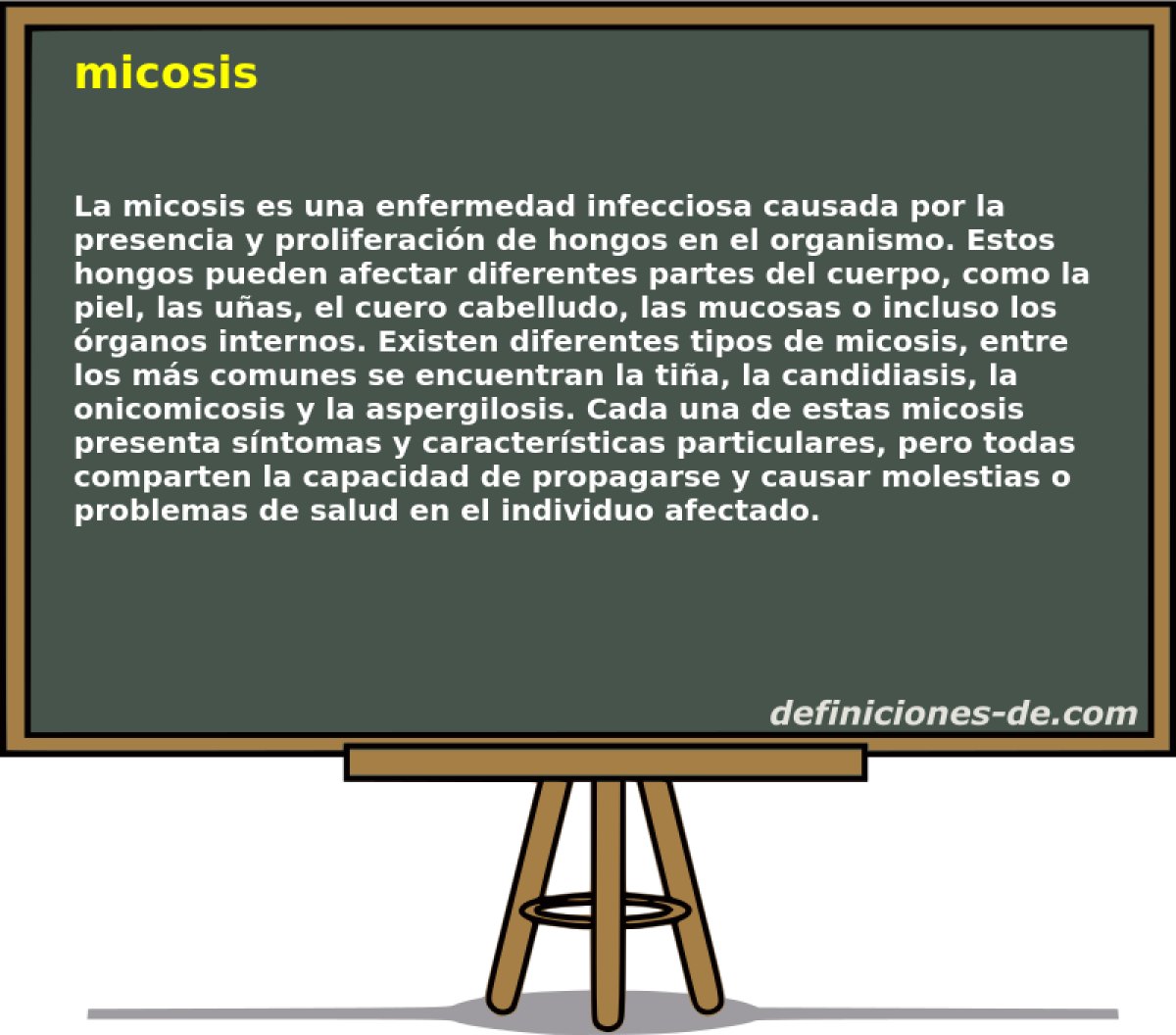 Más abreviaturas...Cómo citar la definición de micosisDefiniciones-de.com (2023). Definición de micosis - Leandro Alegsa © 03/09/2023 url: https://www.definiciones-de.com/Definicion/de/micosis.php