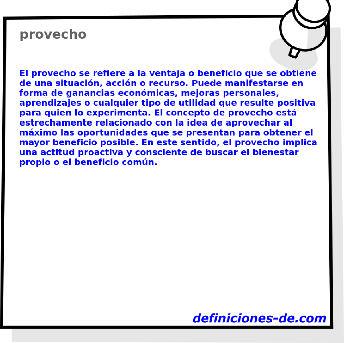 El provecho se refiere a la ventaja o beneficio que se obtiene de una situación, acción o recurso.