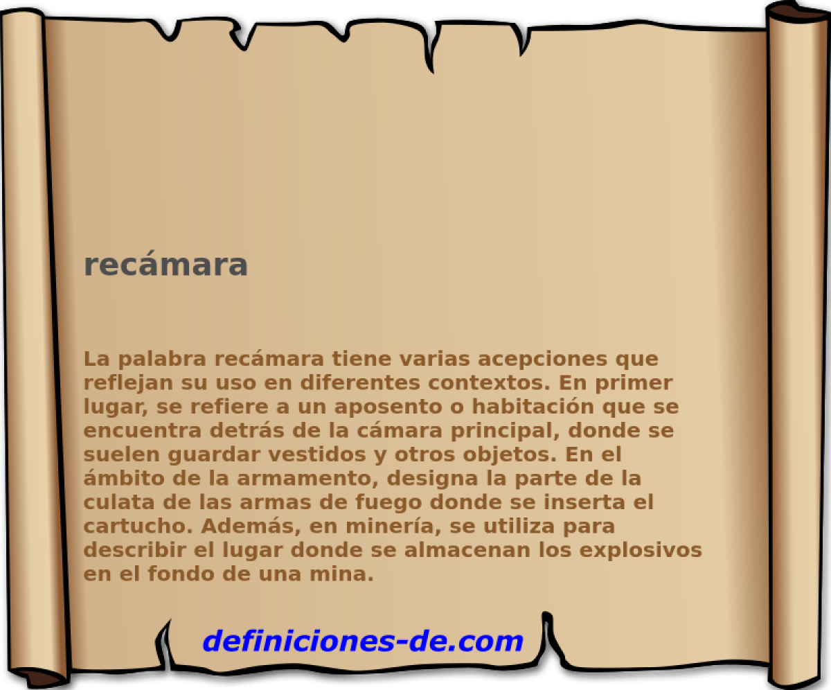 La palabra recámara tiene varias acepciones que reflejan su uso en diferentes contextos.