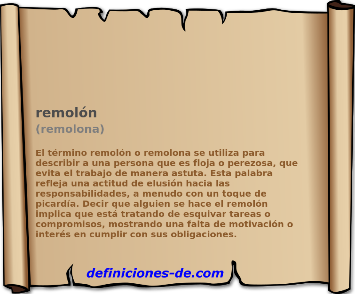El término remolón o remolona se utiliza para describir a una persona que es floja o perezosa, que evita el trabajo de manera astuta.