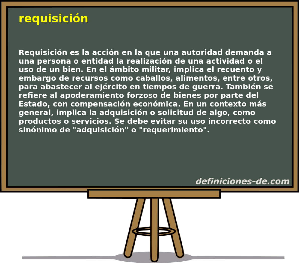 Requisición es la acción en la que una autoridad demanda a una persona o entidad la realización de una actividad o el uso de un bien.