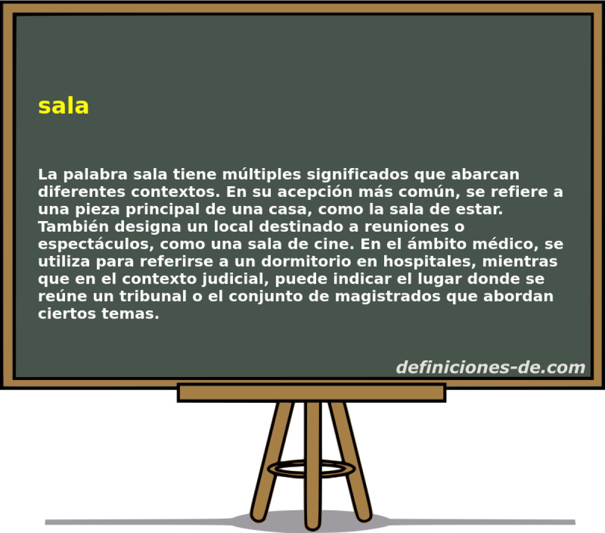 Más abreviaturas...Cómo citar la definición de salaDefiniciones-de.com (2010). Definición de sala - Leandro Alegsa © 06/08/2010 url: https://www.definiciones-de.com/Definicion/de/sala.php