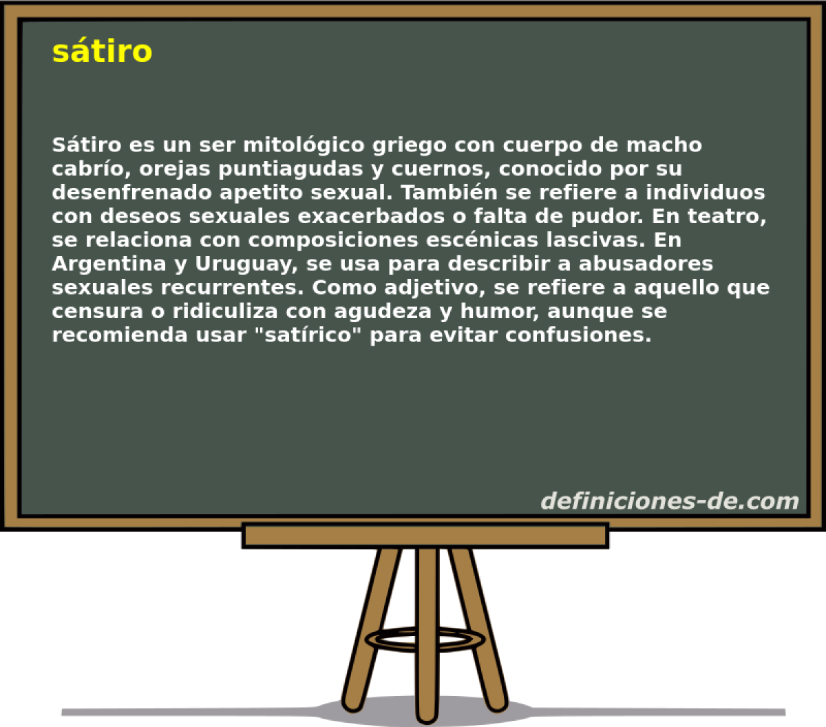 Más abreviaturas...Cómo citar la definición de sátiroDefiniciones-de.com (2022). Definición de sátiro - Leandro Alegsa © 05/10/2022 url: https://www.definiciones-de.com/Definicion/de/satiro.php