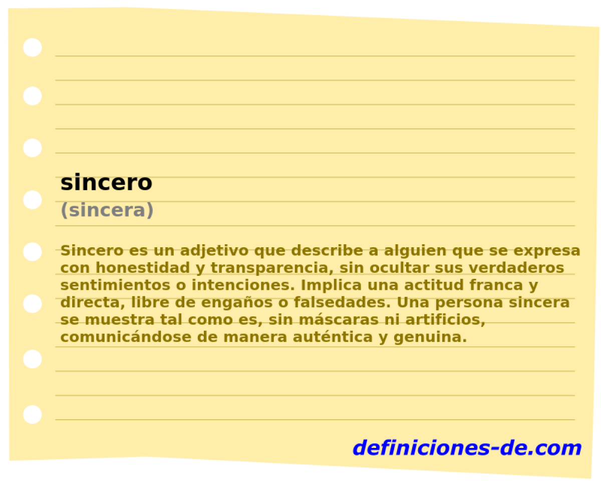 Sincero es un adjetivo que describe a alguien que se expresa con honestidad y transparencia, sin ocultar sus verdaderos sentimientos o intenciones.