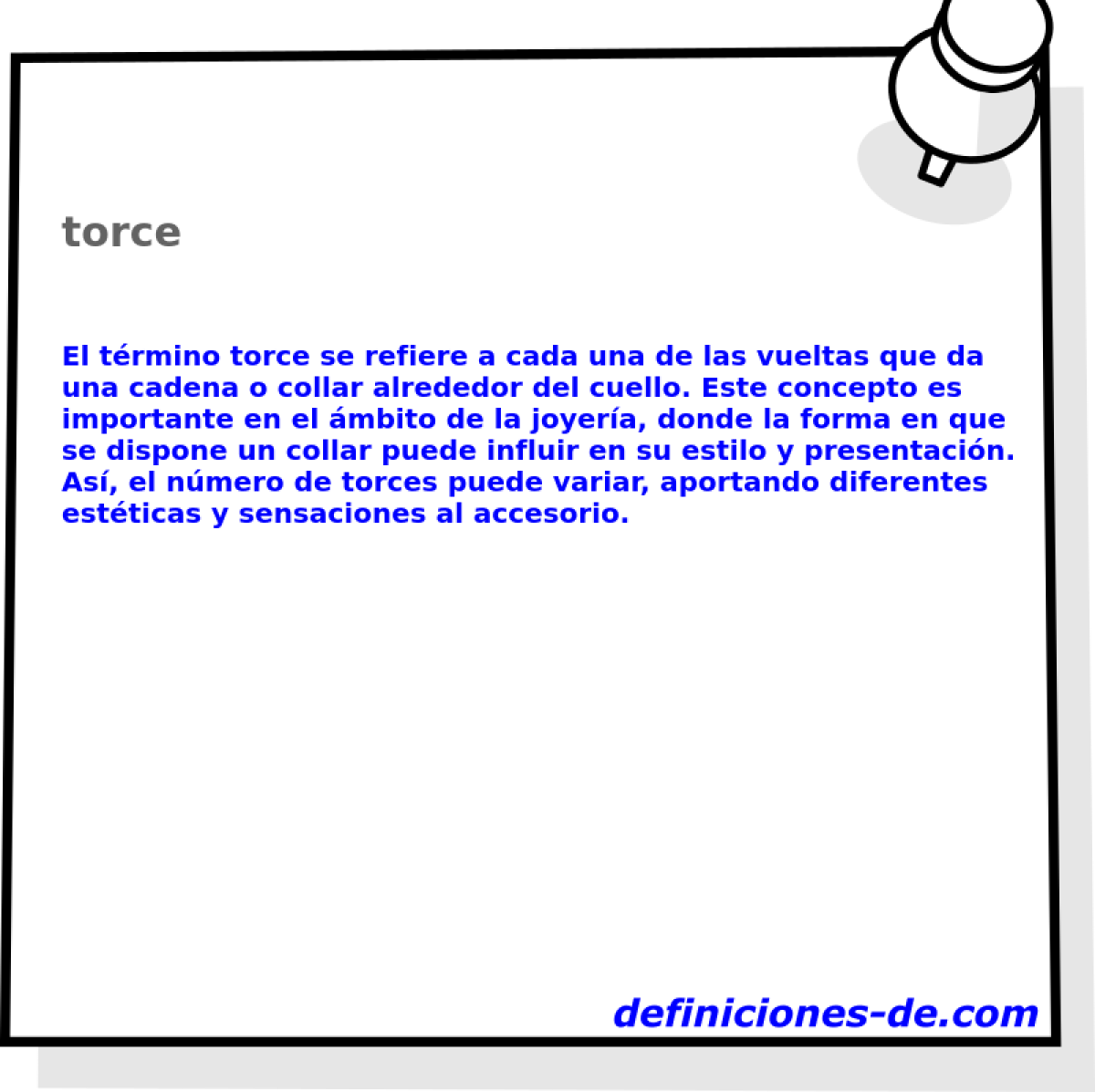 El término torce se refiere a cada una de las vueltas que da una cadena o collar alrededor del cuello.