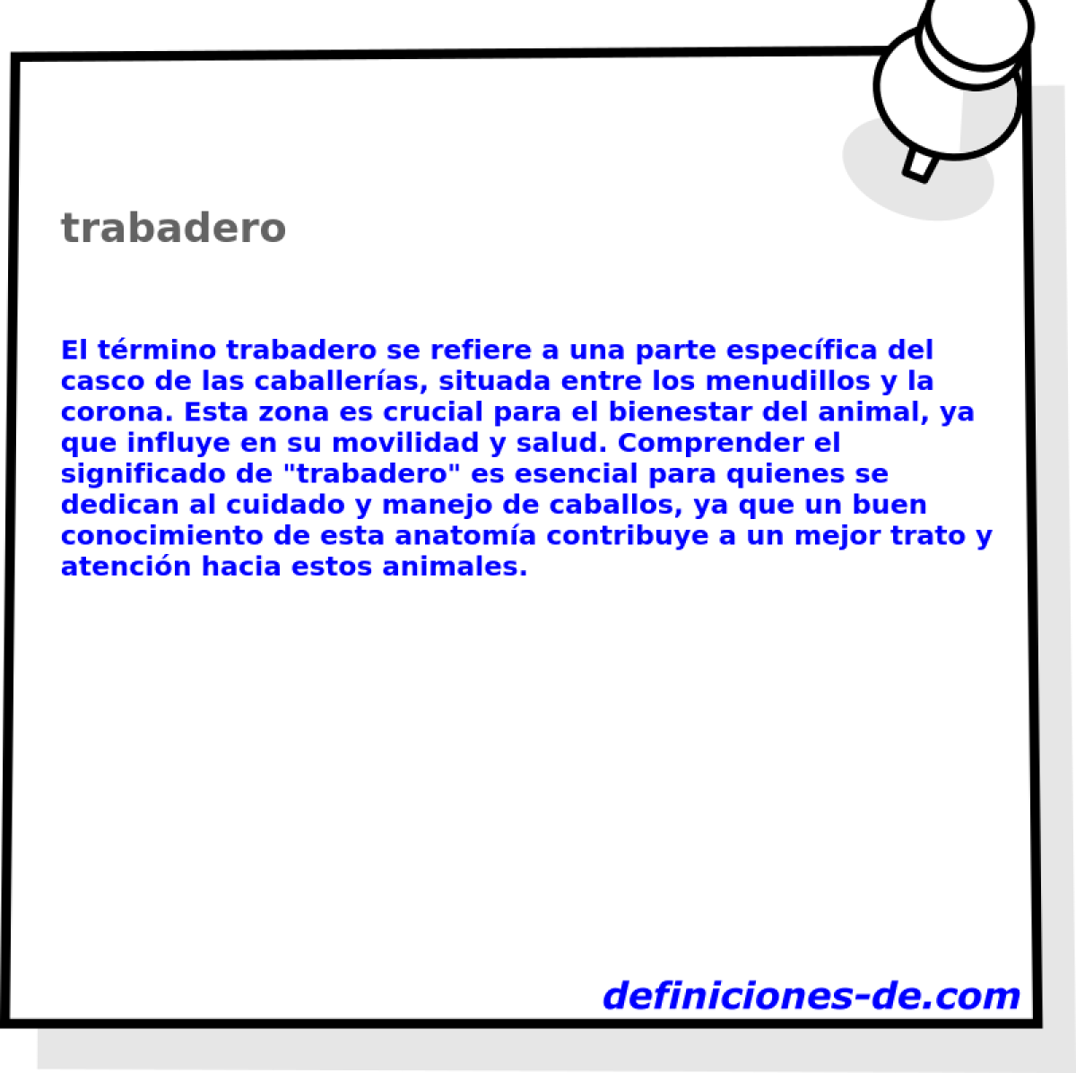 El término trabadero se refiere a una parte específica del casco de las caballerías, situada entre los menudillos y la corona.