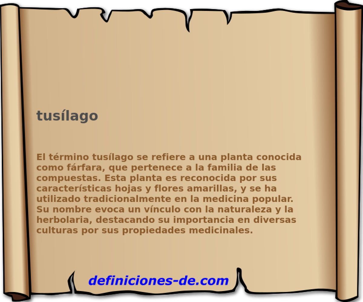 El término tusílago se refiere a una planta conocida como fárfara, que pertenece a la familia de las compuestas.
