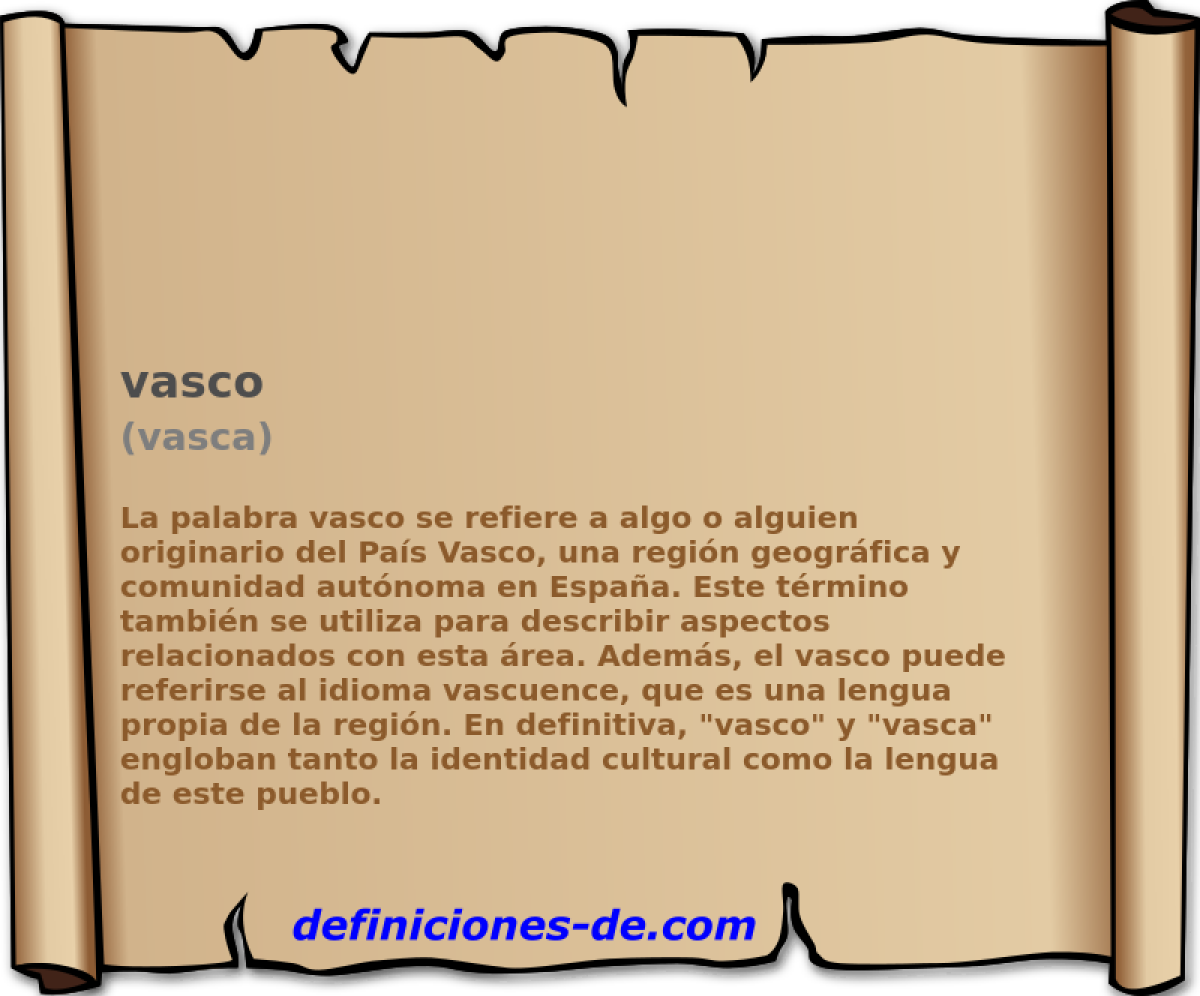 La palabra vasco se refiere a algo o alguien originario del País Vasco, una región geográfica y comunidad autónoma en España.
