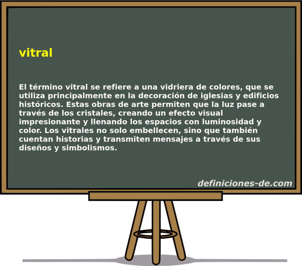 El término vitral se refiere a una vidriera de colores, que se utiliza principalmente en la decoración de iglesias y edificios históricos.