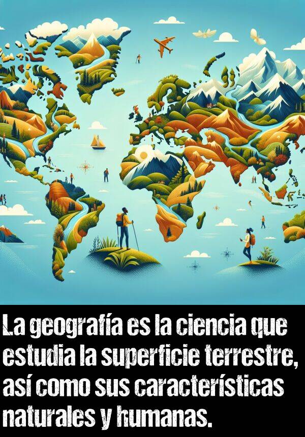 • « La geografía es la ciencia que estudia la superficie terrestre, así como sus características naturales y humanas. »